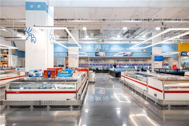 與未改造的永輝超市門店相比,世紀金源店改動不小。兼顧日常生鮮食品消費和節假日集中采購,是這家店呈現出得一大訴求。