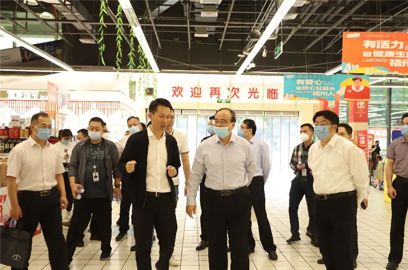 石建平組長一行蒞臨永輝超市福州福新店,查看公司食品安全管理體系和食品安全數字化建設成果,永輝超市食品安全總監陳建國講解了源頭管控、進貨查驗、儲存管理等食品安全管理以及檢測追溯體系建設,現場展示了福建省“一品一碼”追溯系統和永輝超市“食品安全云網”的應用成效。