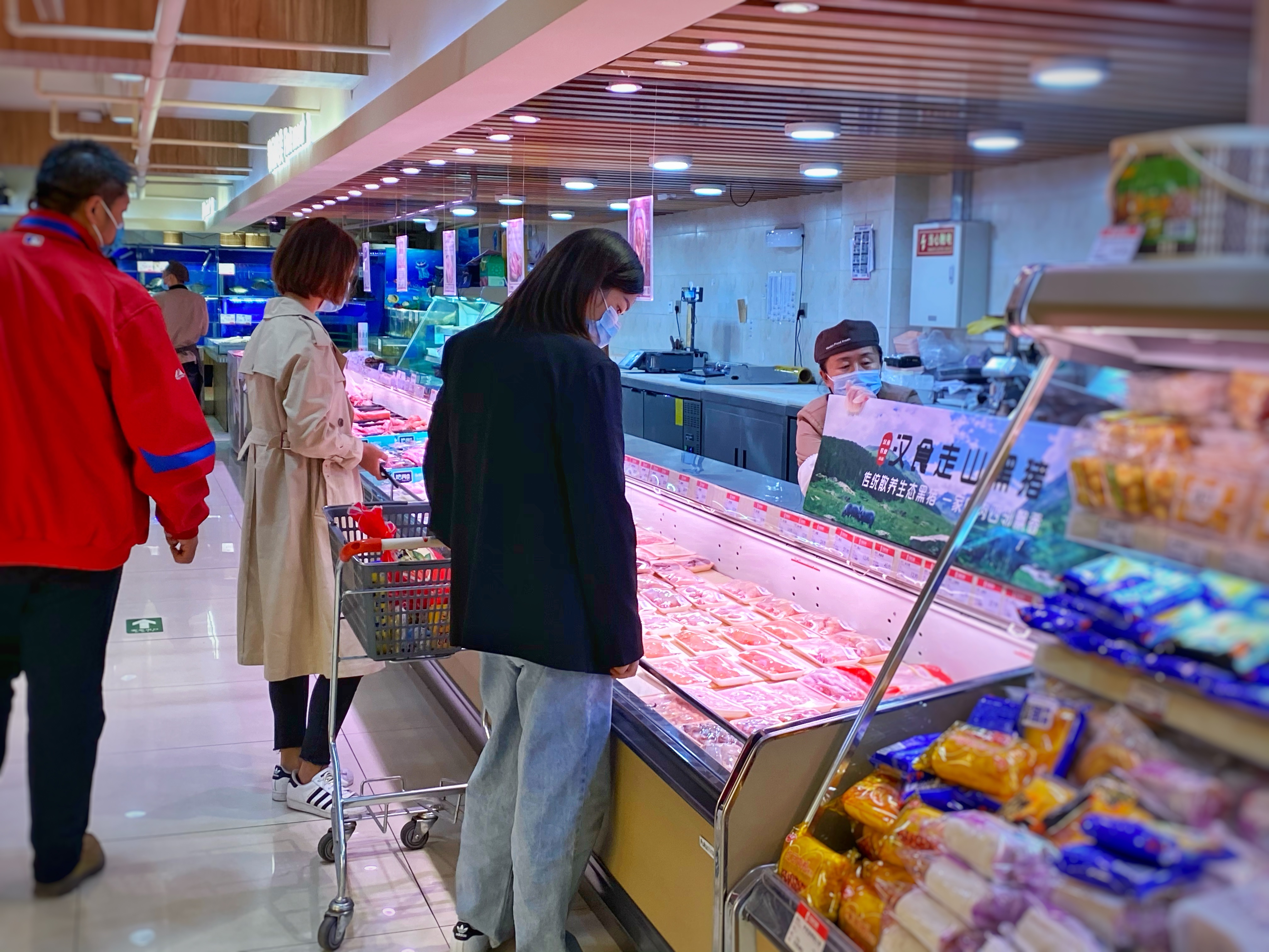 北京朝陽區東三環的一家超市內,消費者表示,對比豬肉價格,雞肉價格更顯得便宜。