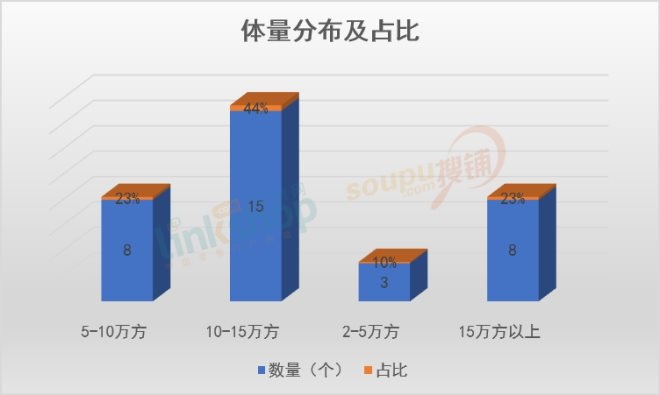 從商業體量上看,10-15萬方的商業體是主流。
