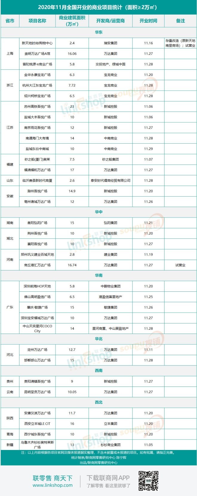 附:2020年11月新開商業項目統計表