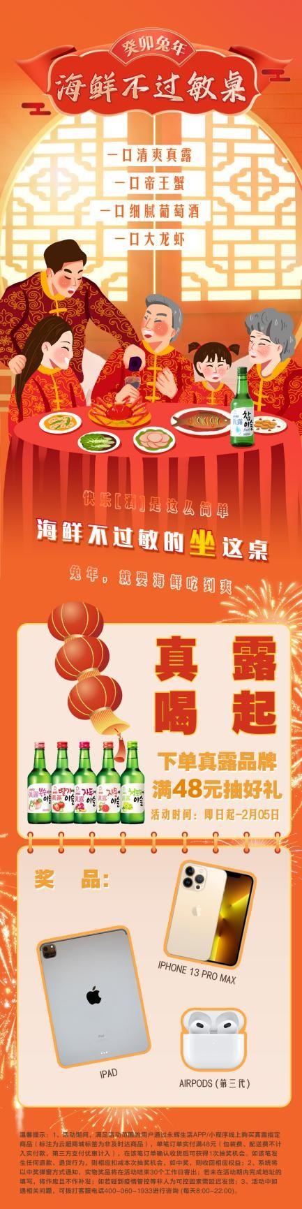 真露燒酒采用4次竹炭凈化過濾工藝,口感清爽,正好配合海鮮飲用。即日起到205日,在永輝生活-詠悅匯酒庫平臺下單真露品牌指定產(chǎn)品滿48元即可抽好禮,獎品有iPhone 13 Pro MaxiPadAirPods。購買葡萄酒在永輝生活-詠悅匯酒庫平臺上也有優(yōu)惠,從116日到121日,麒麟國王珍藏干紅葡萄酒750ml 只需198元,百碧祺家族珍藏長相思干白葡萄酒750ml 只需129元,還有更多來自全球各產(chǎn)區(qū)的葡萄酒參與優(yōu)惠活動。