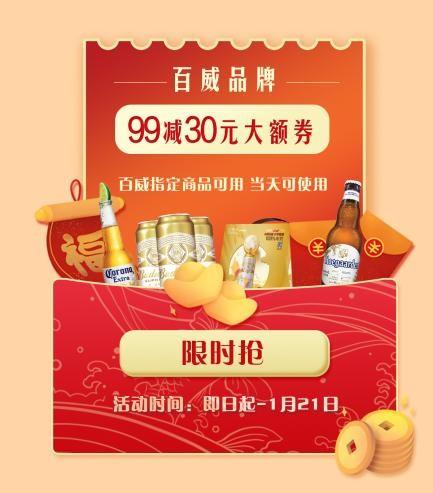 即日起到121日,永輝生活-詠悅匯酒庫平臺發(fā)放百威品牌5元無門檻優(yōu)惠券(限時搶,當天可使用)、百威品牌9930元大額券(當天可使用)。而且同時期,下單百威品牌滿1元抽好禮,可以抽任天堂switch游戲機、奔赴山海自行車、囤貨小推車精美獎品。