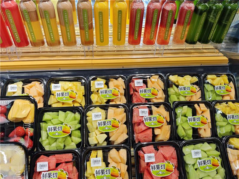 門(mén)店服務(wù)同步進(jìn)行了更高標(biāo)準(zhǔn)的提升,如水果區(qū)增加了鮮果現(xiàn)切、現(xiàn)榨果汁等服務(wù);肉禽區(qū)對(duì)既有的加工操作間進(jìn)行了設(shè)備升級(jí),增加了切絲、切片、絞肉餡等更細(xì)致的服務(wù);同時(shí),門(mén)店內(nèi)也秉持“以客戶為中心“的原則,為消費(fèi)者提供了包括休息區(qū)、飲水區(qū)、充電站、免費(fèi)食品加熱、免費(fèi)醫(yī)藥箱在內(nèi)的生活配套體驗(yàn)區(qū)。