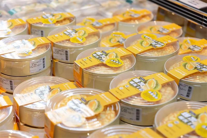從商品本身而言,它具備極強的競爭力,奶油上選用了低反式脂肪酸、低熱量的新西蘭安佳淡,貓山王榴蓮果肉含量也高達40%,用料扎實,食材健康,不使用脫氫乙酸鈉、代可可脂等添加劑,嚴格落實“三去”標準;從顧客反饋來看,北京永輝喜隆多調改店開業時,其曾單日銷售超過1000盒,沈陽沈北吾悅廣場店調改開業已經半個月,烘焙區依然可以看到消費者排隊等待這款單品上架的場景。
